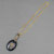 Prachtig medaillon uit onyx met gouden montuur, hierop een bloem uit zaadpareltjes en roosdiamantjes.