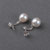 Paar 14 karaat witgouden oorbellen bezet met diamanten en parel.
