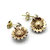 De oorbellen zijn bezet met een grote roosdiamant met een entourage van roosdiamantjes; tevens in het oorknopje een klein roosdiamantje.