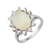 14 Karaat witgouden ring met een cabochon geslepen opaal omrand door diamanten, ca.0.36 ct.